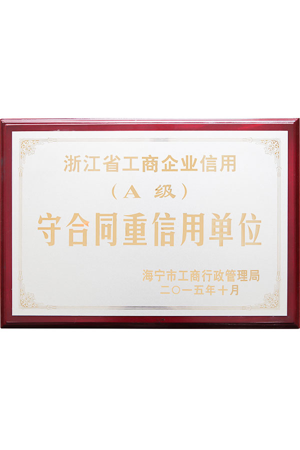 2015年度浙江省工商企業(yè)信用A級(jí)守合同重信用單位