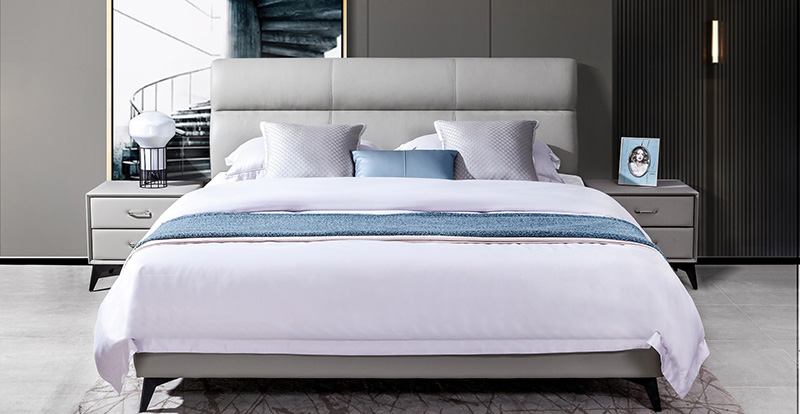 吉輝現(xiàn)代小戶型臥室真皮雙人真皮床A20020