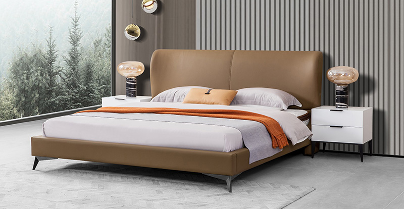 現(xiàn)代簡約臥室真皮雙人真皮床 A20018