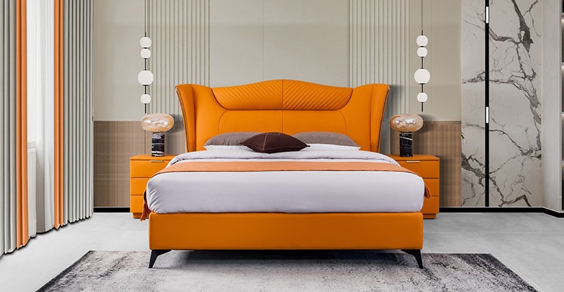 輕奢現(xiàn)代臥室高背真皮雙人真皮床 A21017