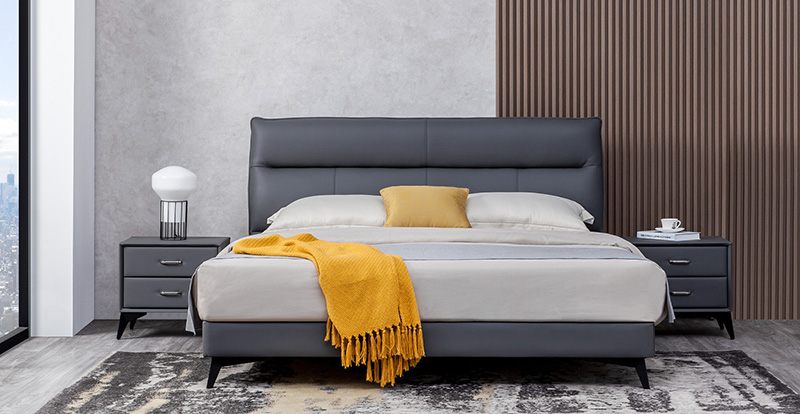 吉輝現(xiàn)代臥室真皮雙背真皮雙人床A20016