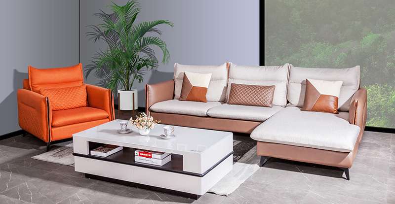 現(xiàn)代簡約客廳科技布藝雙色沙發(fā)組合1079111